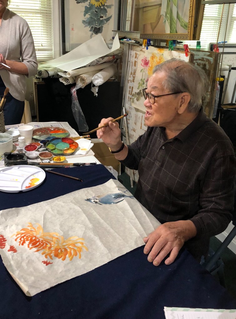 Just watching Mr. Wo paint was such a joy. Approachable, humorous, and full of wisdom, he made the 5-hour class zip by. Special thanks to my art teacher Darlene Kaplan–who has studied under Mr. Wo for some 30 years–for bringing this workshop to my attention and for hosting the session.