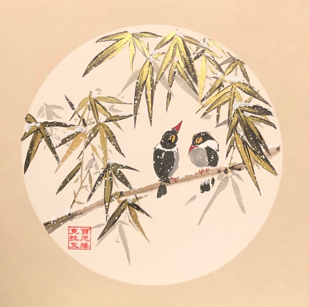 A few months ago, somebody posted a painting of an adorable black and white bird with vivid red beak on one of the Asian art Facebook pages I follow. That was my inspiration for this painting on soft shikishi.